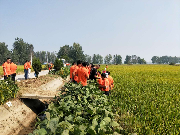 9月29日上午,浩浩蕩蕩的車隊首先開往位于霍邱官塘村的400多畝機插示范田,剛一下車,各位合作伙伴都爭相往田間走去,一睹富美占田間風采。田間觀摩會由霍邱代理商徐玉軍主持,主要從播期、用種量、肥力運籌等方面為大家做了詳細介紹,期間不時有代理商下田數(shù)分蘗、數(shù)粒數(shù)、看結(jié)實率,對富美占田間長勢、品種表現(xiàn)贊不絕口,各縣代理商也積極組織團隊在田邊合影留念;然后車隊再次啟程前往富美占連片直播田,與對照品種相比富美占以其分蘗強、產(chǎn)量高、抗倒性好、結(jié)實率高等突出優(yōu)勢再次獲得了參會人員的一致好評。