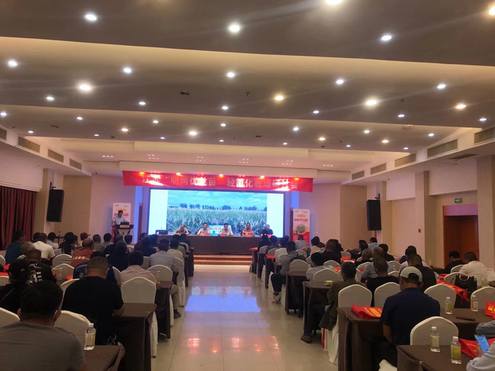 金秋九月,金黃的稻谷隨著秋風(fēng)翻起金波,豐收在即。公司于9月28日-29日在江蘇省泗陽(yáng)縣新世界大酒店隆重召開 “明兩優(yōu)絲苗”輕簡(jiǎn)化栽培研討會(huì)暨田間觀摩會(huì)議。會(huì)議有幸邀請(qǐng)到泗陽(yáng)縣農(nóng)業(yè)農(nóng)村局陳春化局長(zhǎng)致辭,泗陽(yáng)縣作栽站范輝站長(zhǎng)參加;參加會(huì)議的還有江蘇明天種業(yè)科技股份有限公司副總經(jīng)理胡玉成、總經(jīng)理助理?xiàng)詈2肮敬恚骺h市經(jīng)銷商、種植大戶、育秧合作社代表共計(jì)200余人參加會(huì)議。