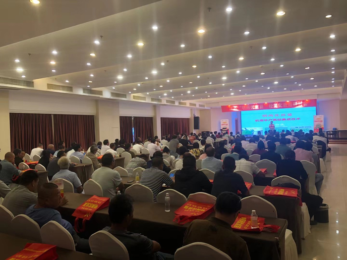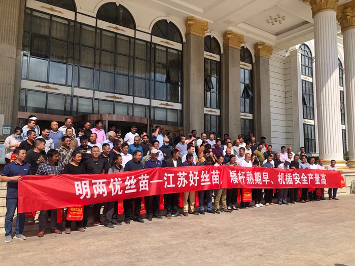 接著由盧偉林經(jīng)理向參會(huì)代理商、種植大戶、育秧合作社代表介紹明兩優(yōu)絲苗的特征特性以及最近幾年各縣市種植田間表現(xiàn)情況。盧經(jīng)理介紹到隨著土地流轉(zhuǎn),種植大戶越來越多,雜交水稻移栽成本居高不下、人工緊缺,大戶用工難、收益低。明兩優(yōu)絲苗的生育期、抗倒性、抗病性及產(chǎn)量結(jié)構(gòu)就特別適合當(dāng)下種植大戶和育秧合作社做雜交稻機(jī)插種植。因此雜交水稻的輕簡(jiǎn)化栽培勢(shì)不可擋,明兩優(yōu)絲苗應(yīng)勢(shì)而出,適時(shí)填補(bǔ)了江蘇淮北雜交水稻機(jī)插合法品種的空白。同時(shí)詳細(xì)介紹了明兩優(yōu)絲苗的栽培管理措施。