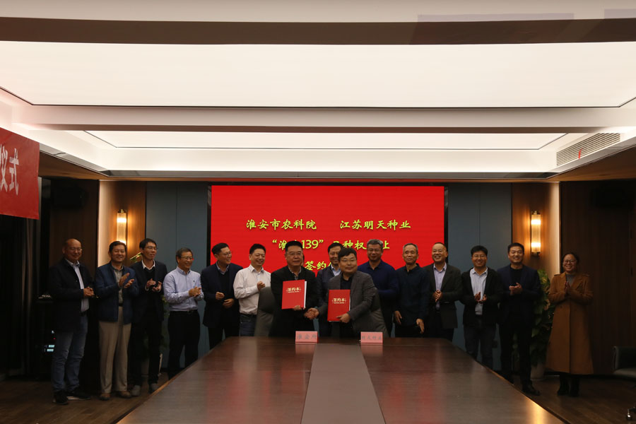 11月25日下午,江蘇明天種業(yè)與淮安市農(nóng)科院、徐州市農(nóng)科院、江蘇(武進(jìn))水稻研究所在公司會(huì)議室,就“淮麥139”、“徐稻119”、“武運(yùn)粳9242”隆重舉行轉(zhuǎn)讓簽約儀式。江蘇明天種業(yè)成功簽約以上三個(gè)品種全國(guó)獨(dú)占實(shí)施許可經(jīng)營(yíng)權(quán)。江蘇省農(nóng)業(yè)農(nóng)村廳、江蘇省農(nóng)業(yè)科學(xué)院、淮安市農(nóng)業(yè)科學(xué)院、徐州市農(nóng)業(yè)科學(xué)院、江蘇(武進(jìn))水稻研究所等領(lǐng)導(dǎo)、專家到會(huì)見(jiàn)證。會(huì)議由江蘇明天種業(yè)科技股份有限公司嚴(yán)輝民總經(jīng)理主持。 簽約儀式上,育種團(tuán)隊(duì)代表淮安市農(nóng)科院楊子博主任、徐州市農(nóng)科院胡婷婷主任、武進(jìn)所朱邦輝副所長(zhǎng)分別就三個(gè)品種的育種思路及品種特性做了詳細(xì)的介紹;明天種業(yè)經(jīng)營(yíng)團(tuán)隊(duì)介紹了目前三個(gè)品種的試驗(yàn)示范情況以及品種的精準(zhǔn)定位和推廣思路,并表示與育種團(tuán)隊(duì)共同做大做強(qiáng)三個(gè)品種的決心。 淮安市農(nóng)科院彭杰書(shū)記、徐州市農(nóng)科院楊峰副院長(zhǎng)、武進(jìn)所徐玉峰所長(zhǎng)分別對(duì)明天種業(yè)團(tuán)隊(duì)給予高度贊揚(yáng),表示品種能簽約明天種業(yè)很是放心,此前明天種業(yè)與三家單位已有深厚的合作基礎(chǔ),成功建立了良好的合作模式,相信此次合作在目前種業(yè)大環(huán)境下將產(chǎn)生里程碑的意義。 與會(huì)的江蘇省農(nóng)科院劉賢金副院長(zhǎng)、江蘇省農(nóng)業(yè)農(nóng)村廳種業(yè)管理處馬愛(ài)京處長(zhǎng)、種子管理站何金龍站長(zhǎng)、南繁南鑒站許明站長(zhǎng)分別對(duì)三個(gè)品種的合作表示祝賀,也表示根據(jù)中央一號(hào)文件中提出的全面實(shí)施種業(yè)振興、加快打造種業(yè)振興骨干力量的要求,明天種業(yè)作為農(nóng)業(yè)農(nóng)村部遴選的國(guó)家種業(yè)陣型企業(yè)應(yīng)有所擔(dān)當(dāng),將以此次科企合作作為新的起點(diǎn),創(chuàng)新思路,大膽開(kāi)拓,引領(lǐng)江蘇種業(yè)邁入更高的臺(tái)階。 江蘇省農(nóng)業(yè)農(nóng)村廳俞衛(wèi)東二級(jí)巡視員對(duì)此次合作雙方表示祝賀,對(duì)科企合作的模式給予充分肯定,并指出江蘇省農(nóng)業(yè)農(nóng)村廳種業(yè)處、種子管理站及南繁南鑒站作為種子服務(wù)部門,應(yīng)加強(qiáng)服務(wù)意識(shí),聯(lián)合更多省內(nèi)科研和企業(yè)力量,將此合作模式在省內(nèi)大力推廣,同時(shí)勉勵(lì)明天種業(yè)要與育種單位,要共同對(duì)這些好品種研究配套的高產(chǎn)優(yōu)質(zhì)栽培方法;要結(jié)合推廣部門建好高產(chǎn)示范方,盡快加大推廣力度。推動(dòng)江蘇稻麥產(chǎn)業(yè)的發(fā)展,共同為保障江蘇及國(guó)家糧食安全、農(nóng)民增收作出貢獻(xiàn)。 淮安市農(nóng)業(yè)科學(xué)院顧正中研究員、江蘇(武進(jìn))水稻研究所徐曉杰書(shū)記、江蘇明天種業(yè)科技股份有限公司副總經(jīng)理王波、徐江、師洪飛、總經(jīng)理助理韓國(guó)標(biāo)等相關(guān)領(lǐng)導(dǎo)、專家參加此次會(huì)議。